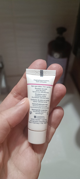 РазвернутьПришёл в подарок крем. Тюбик совсем малюсенький, но расход не большой, думаю хватит на несколько месяцев! Мне нравится, нежный, запах приятный, наносится и ложится отлично, нет жирности от него. Наношу утром и вечером. Есть чувство увлажнения, надеюсь что убирает отёчность с утра)
