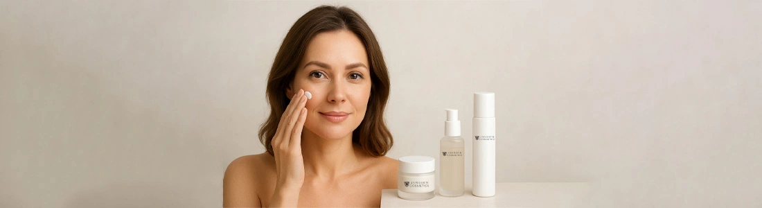 Фитоэстрогены — растительные аналоги женских гормонов — приходят на помощь. Они стимулируют синтез коллагена и эластина, улучшают структуру кожи, повышают её плотность. Линия Mature Skin от Janssen Cosmetics построена на комплексе Cellular Regeneration (CRC), ключевой компонент которого — экстракт красного клевера, богатый изофлавонами. Он уменьшает выраженность морщин, укрепляет соединительную ткань и увлажняет. Комбуча (ферментированный чёрный чай) обеспечивает эффект липофилинга — разглаживает кожу изнутри.