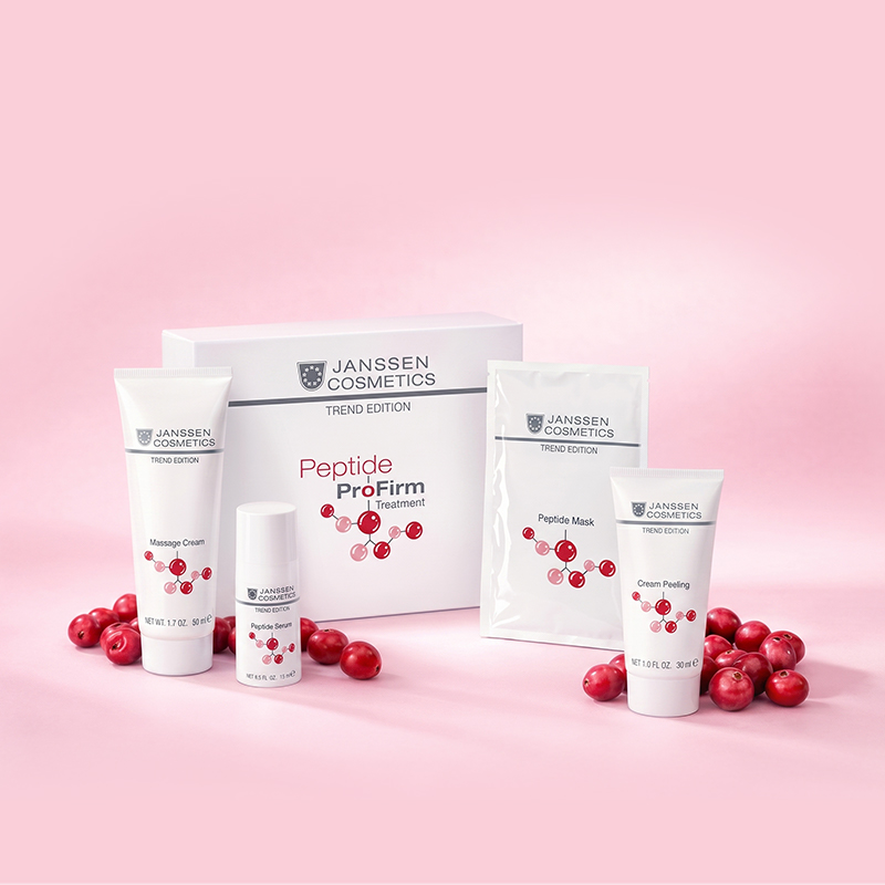 Профессиональная процедура «Пептидная терапия Peptide ProFirm» построена на синергетическом действии нейропептида аргирелина (ацетилгексапептида-8) и биопептида клюквы, усиленном увлажняющими, успокаивающими и восстанавливающими компонентами.